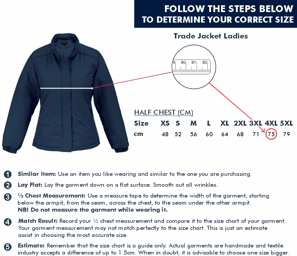 XS, S, M, L, XL, 2XL, 3XL, 4XL, 5XL